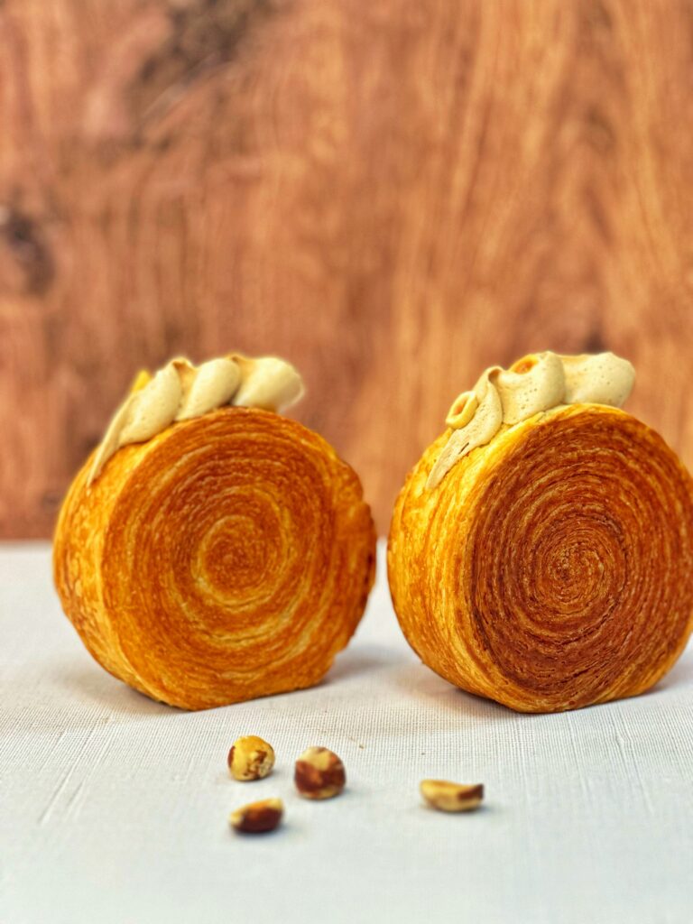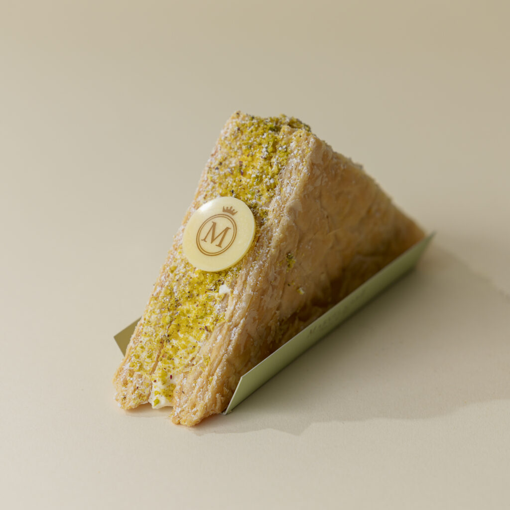 Fresh Puff pastry layered with light homemade whipped cream and grinded fresh Pistachio.