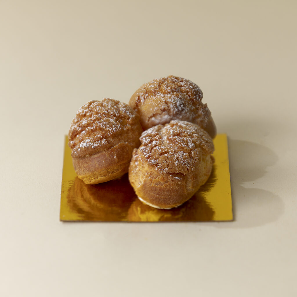 Cocoa choux pastry with crunchy cocoa crumble and chocolate whipped ganache.